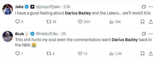 就连夏季联赛的直播员都希望贝兹利能留在NBA,湖媒也认为贝兹利表现不错,希望探讨他留队的话题。