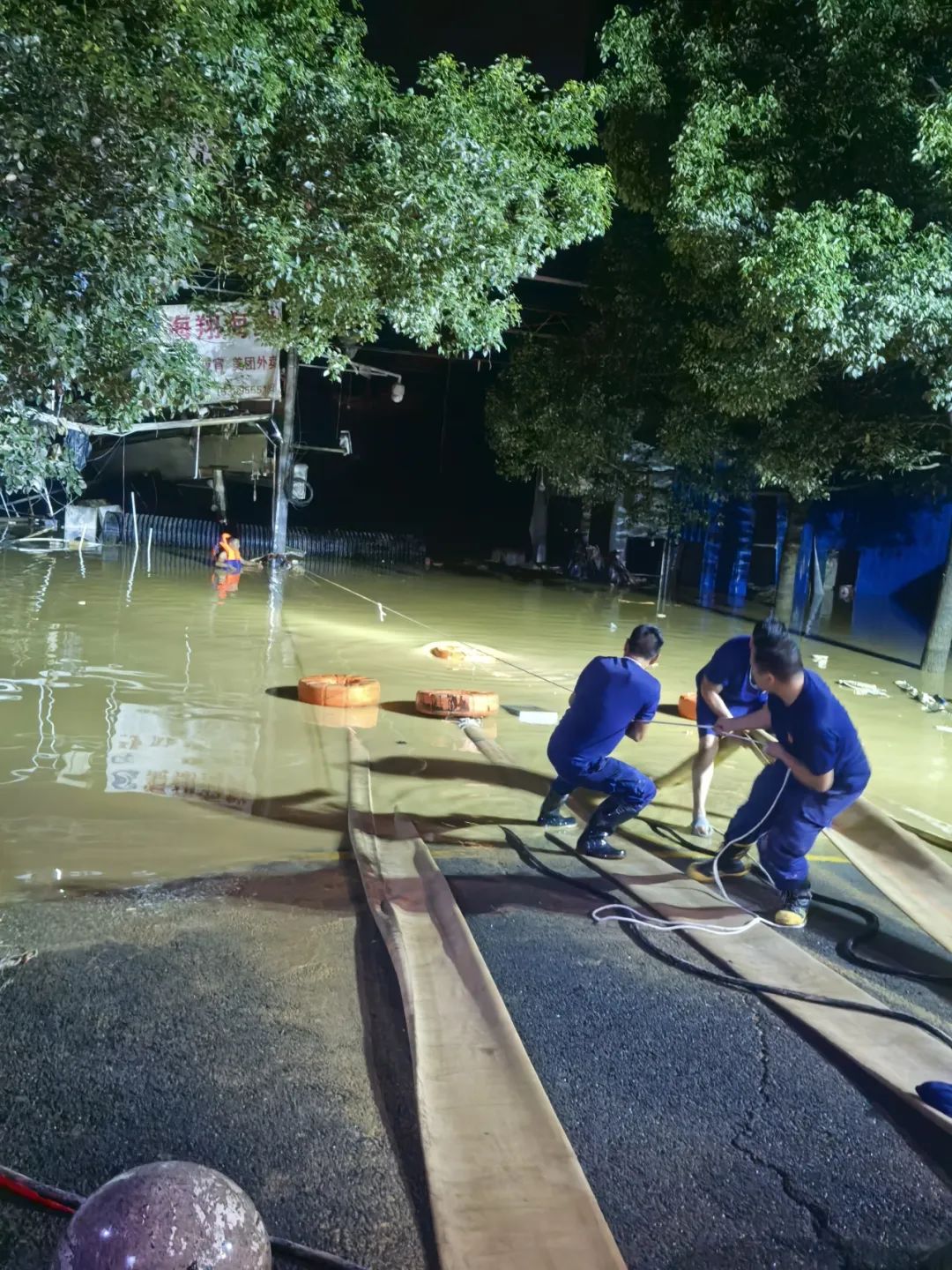 在榕城尚品小区侧门抽排点位,贵州磷化队的队员们不仅要应对复杂的环境,还要与时间赛跑。分队长杨森带着满是红疹的手臂,和队员们一起连夜架设抽水机组,一直坚守到排涝任务完成。他说:“必须在水质彻底恶化前抽干积水,化解疫病传染风险!”