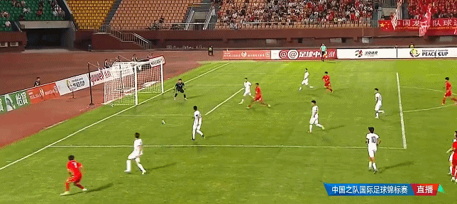上半场伤停补时阶段,乌兹别克斯坦队抓住机会,拉夫尚别科夫接住队友的斜吊传中,头球攻门扳平比分。