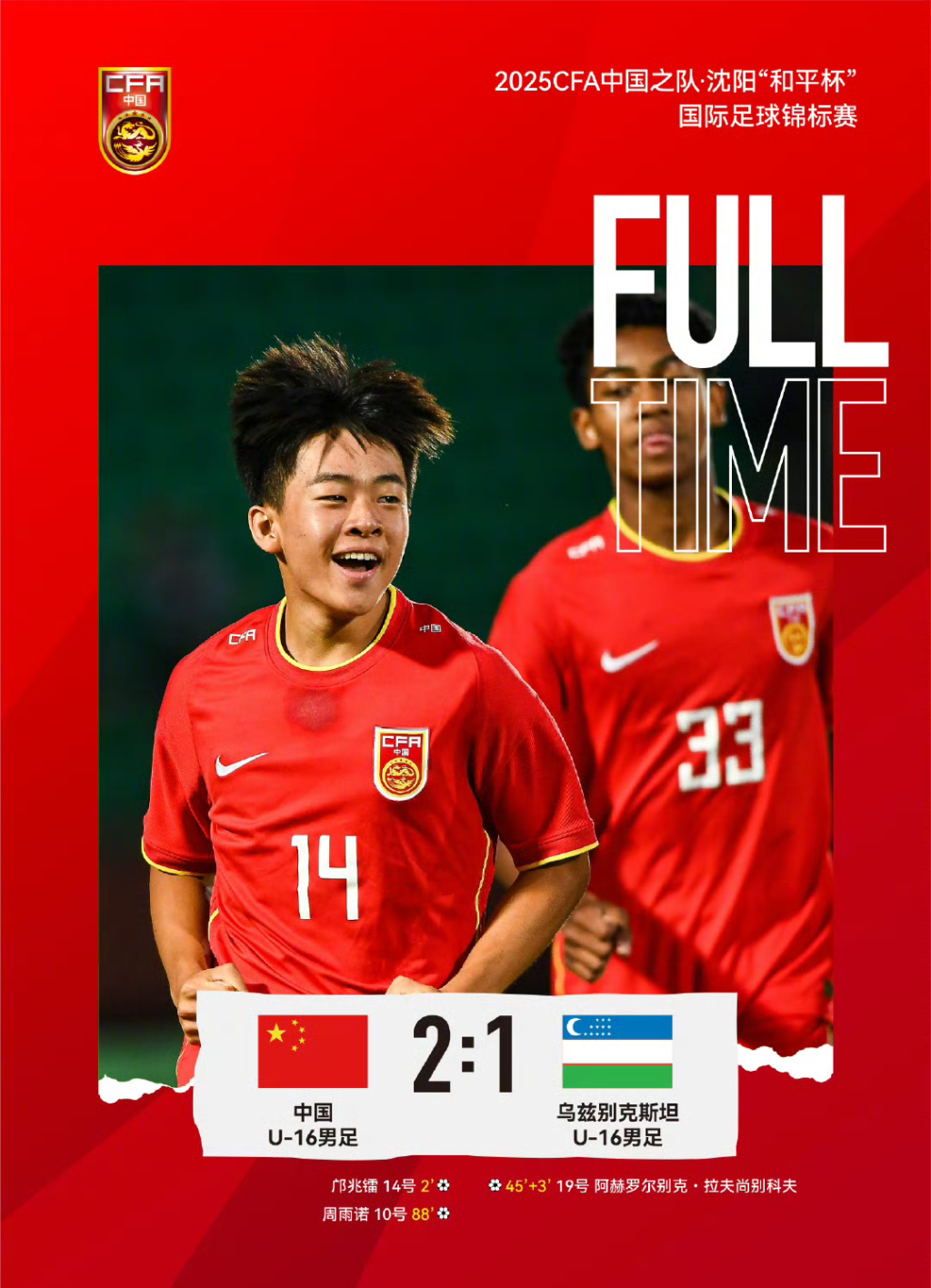 中国U16男足绝杀乌兹别克斯坦,“和平杯”保留争冠希望