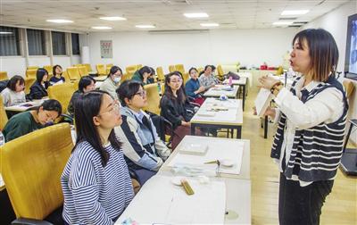 中医养生课上,老师讲解中医知识,带学员制作中药香囊、药茶药膳。学员杜鹃说,学习中医一是因年龄和职业需要,二是全民健康意识普及,掌握中医知识对自己和家人有益。“‘天图夜读’中医课程有针对性、很实用,有理论知识也有实操,像制作中药香囊平时很少接触。老师还教中医药膳制作方法和配方,能提高家人健康水平。”她还说,“以前对中医理解很简单,现在系统学习后,知道不同体质调理方式不同,更体会到中医博大精深。”