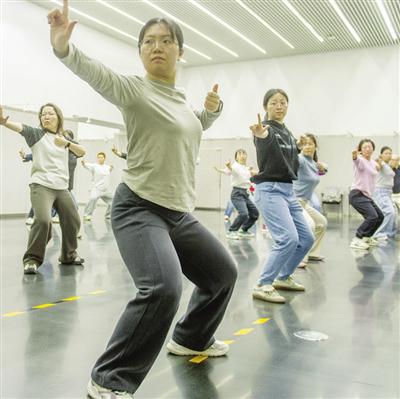 晚上6点半,滨海新区文化馆的走廊里吉他声与拉丁舞曲交织。舞蹈教室里,42岁的王哲和29名学员对着镜子认真练习恰恰舞步。她把手机架在角落,录下动作发到家庭群:“闺女,妈今天学了新步子!”