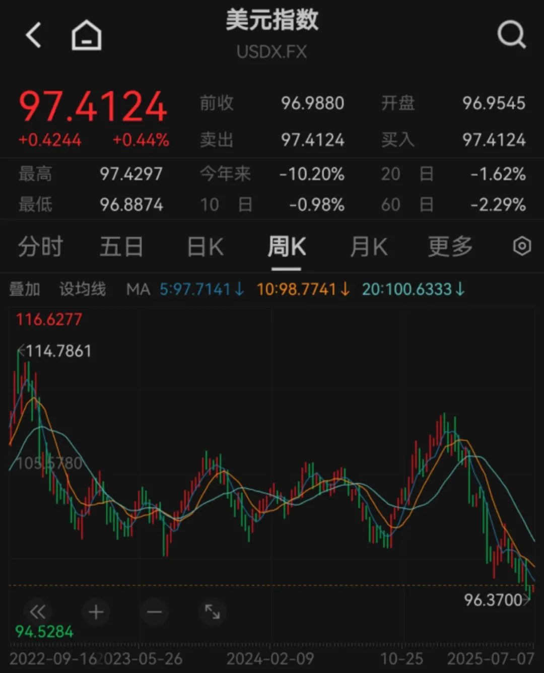 另外,今年以来美元指数已跌超10%。
