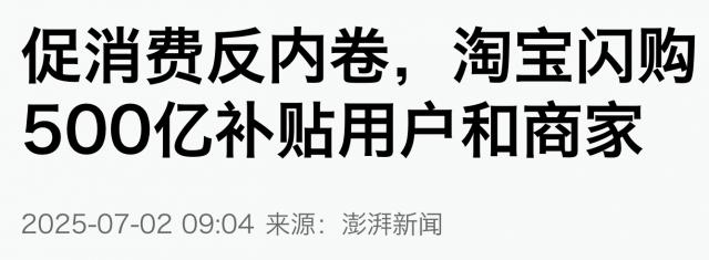 仔细想想,周末这场大战好像是淘宝先挑起来的。7月2号,淘宝闪购喊出“促销费反内卷”口号,要用500亿补贴用户和商家。