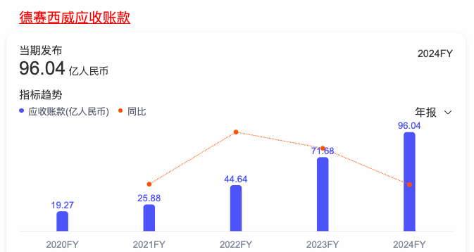 德赛西威受到冲击。2024年应收账款余额为96亿元,同比增长34%,占总资产比例达44.7%,4年翻了5倍。应收账款周转率下降,账龄结构恶化。
