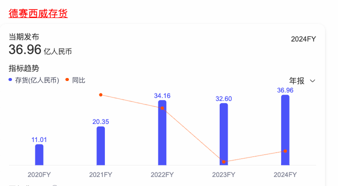 应收账款周期延长影响存货周转效率。2024年存货余额为37亿元,同比增长13.4%,占总资产17.2%,较2020年翻了超3倍,存货周转天数延长至65天。