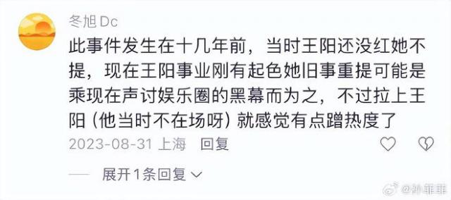 截至发稿,王阳未公开回应。他是否会回应不得而知,但这次孙菲菲没给王阳留一点情面。