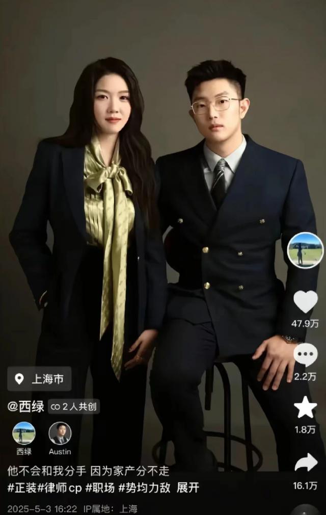 西绿骗钱?前两天咱们唠过的那对网红精英律师情侣,大家还记得吧?就是天天在高楼大厦架个补光灯,各种拍符合港台电视剧中律师形象的西绿和她男友Austin。一开始西绿被曝光翻车,是因为网友发现她自称“律所高级合伙人”,实际上是个没取得律师执业资格证、法考都没通过的假律师。如果只是造假身份,最多她灰溜溜销号消失在互联网上,但这位姐居然在现实生活中也用假身份骗人,还骗了一个律师事务所。她在这家事务所接了一位客户的单,用不知名手段侵占了客户400余万元,客户找上门,事务所才发现这人是骗子。不过也有网友认为事务所不可能不知道西绿没资格证,只是因为西绿能通过当网红给律师招揽生意,所以一直睁一只眼闭一只眼,现在出了事马上切割。各位觉得哪种说法更靠谱呢?
