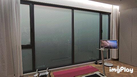 演示人员一声令下,阳台进入“健身模式”,虚拟跑道的设计很受欢迎,若能联机或人机PK,健身将更有趣。