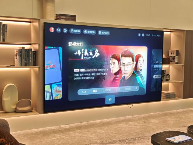 进入客厅,三翼鸟将电视定义为家中的控制中心和显示终端。在演示人员的语音交互下,电视能轻松切换内容,遇到智能家居使用问题,喊话电视就能获得教程。