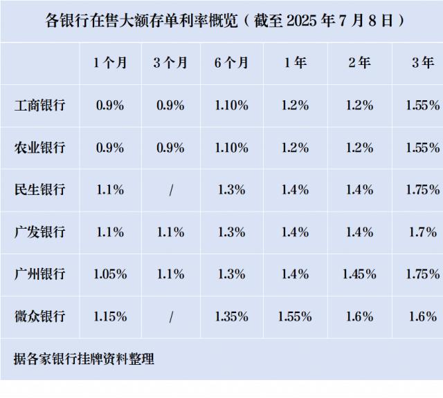 近期,南方财经记者走访广州多家银行网点发现,商业银行当前在售的个人大额存单利率,随存款利率持续下调,整体降至“1”字头。