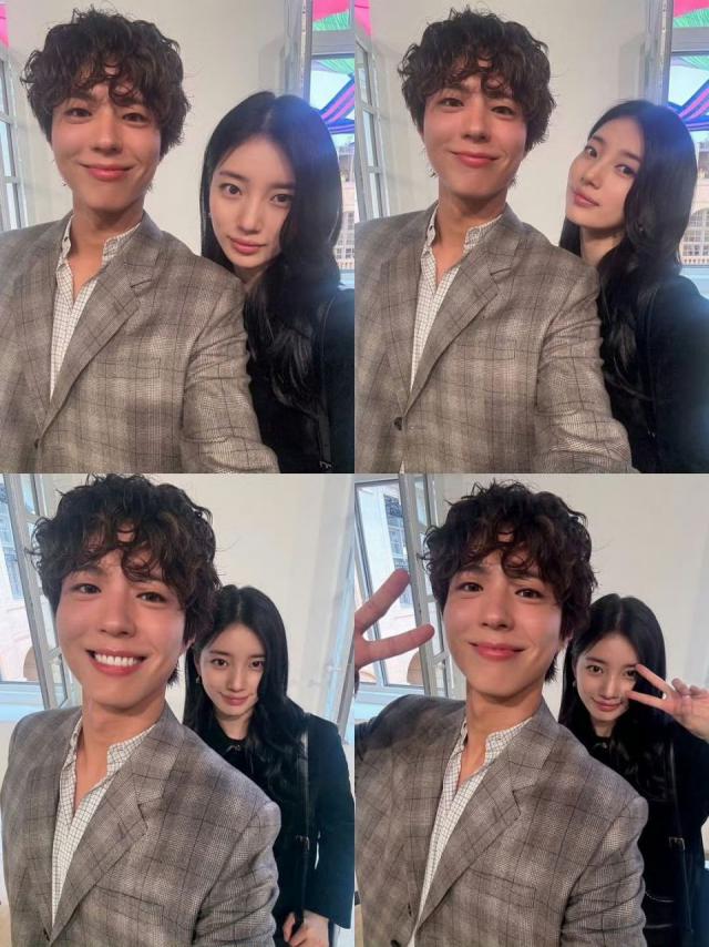 朴宝剑和裴秀智的四连拍,能看出两人私下关系很好,一同比耶时十分可爱。