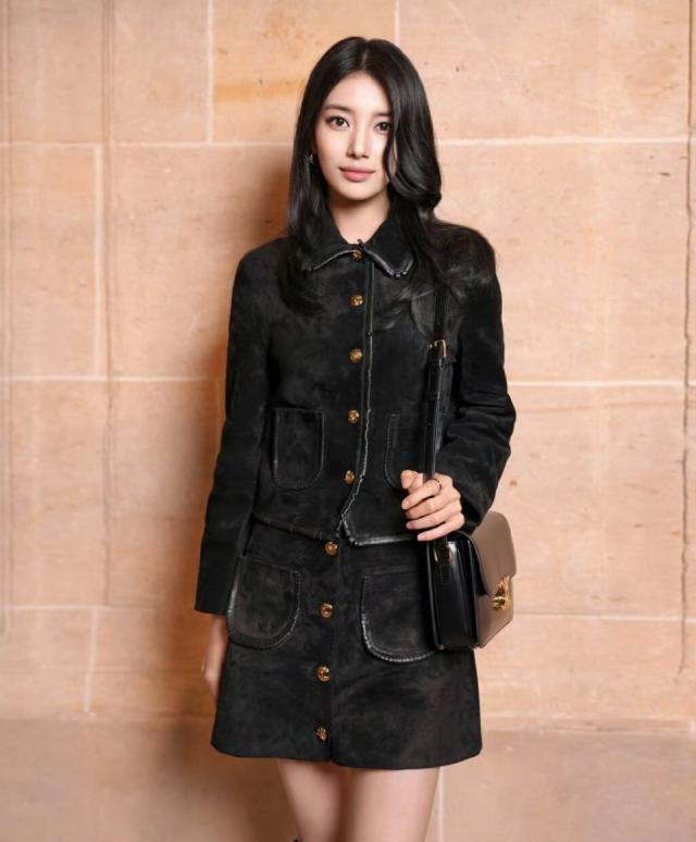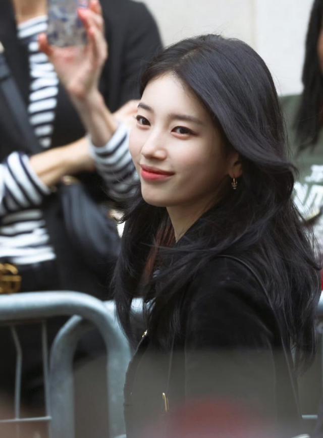 裴秀智身着一身黑色套装,完美贴合她的气质,温婉中带点清冷,宛如韩剧中的财阀千金。