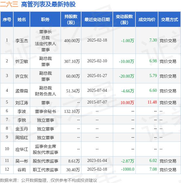 据证券之星消息,依据 7 月 8 日市场公开信息、上市公司公告及交易所披露数据可知,二六三(002467)最新董监高及相关人员股份出现变动。在 2025 年 7 月 7 日,公司高管孟雪霞减持公司股份共计 4.67 万股,占公司总股本的 0.0034%。在变动期间,公司股价上涨了 1.24%,7 月 7 日当日收盘价格为 6.55 元。