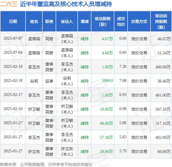 二六三:7 月 7 日高管孟雪霞减持 4.67 万股股份