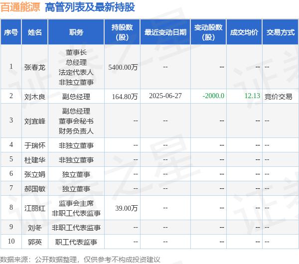 以下是百通能源的高管列表及最新持股情况:
