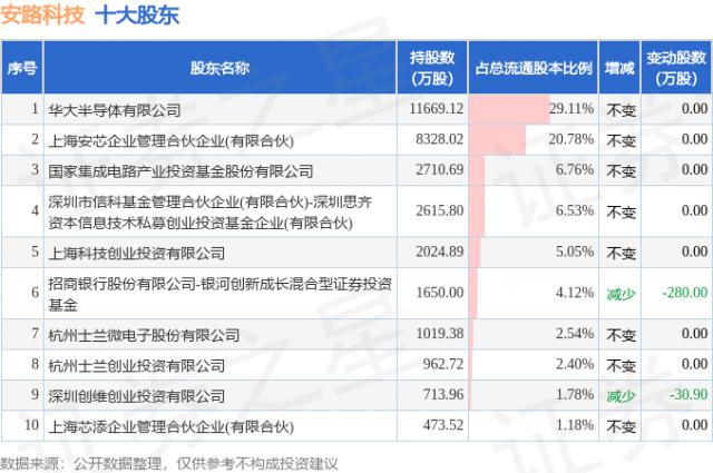 根据安路科技2025年一季报公布的十大股东详情如下: