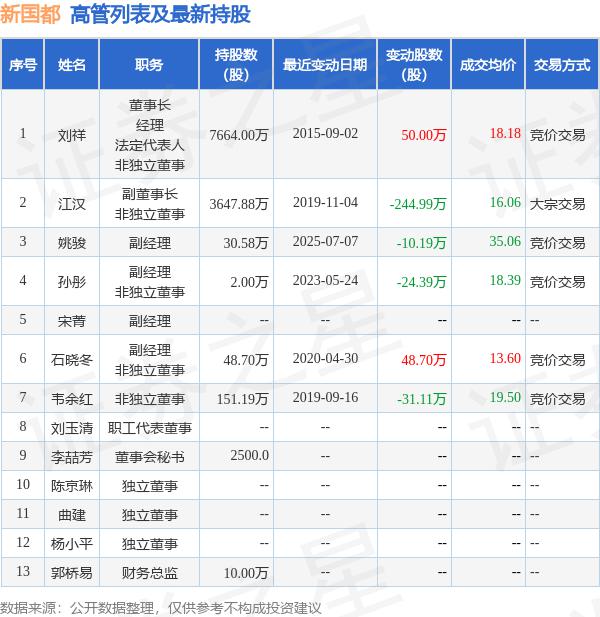 新国都的高管列表及最新持股情况如下: