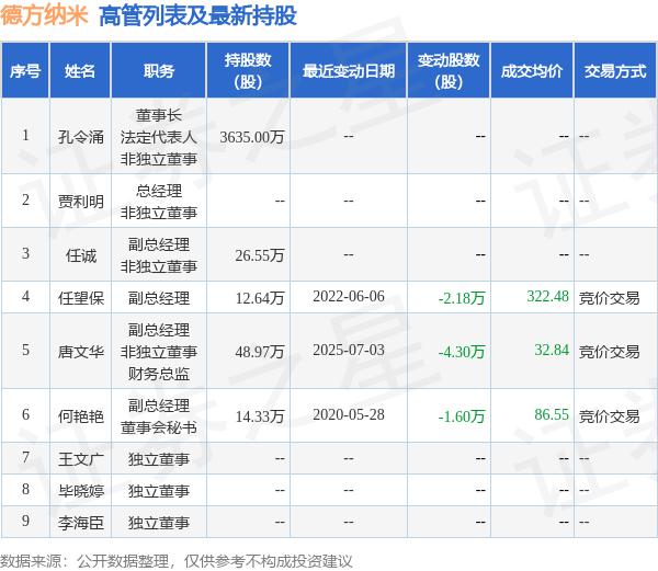 德方纳米近半年内董监高及核心技术人员增减持详情如下: