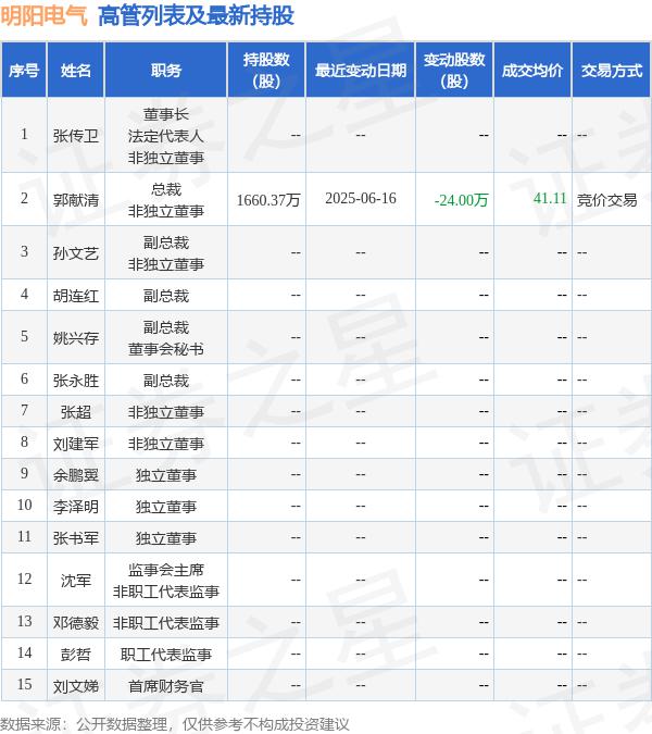 明阳电气近半年内董监高及核心技术人员增减持详情如下: