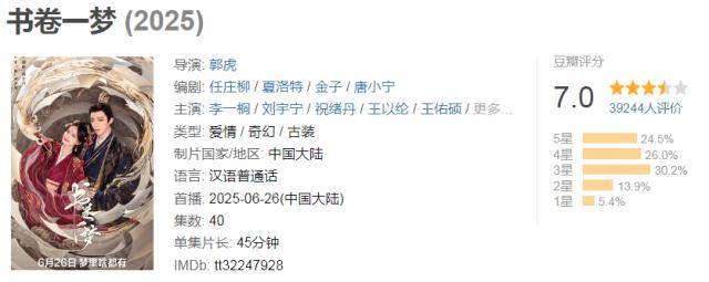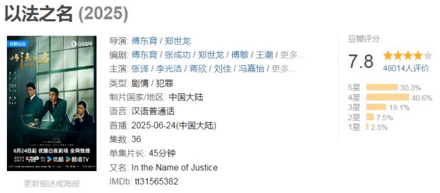 《以法之名》最初 7.6 分,之后攀升到 7.8 分;《书卷一梦》开分 7.0 分。此外《锦绣芳华》《浅渊》等热播剧暂无开分。