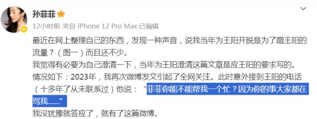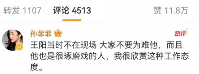 王阳回应后,孙菲菲在评论区证实他不在现场,希望网友别为难他。