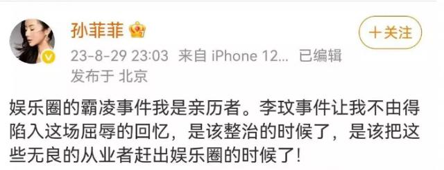 十几年后,2023年夏天李玟去世,粉丝翻出细节称她生前遭职场霸凌,此事不断发酵。孙菲菲此时表示自己也是娱乐圈霸凌的受害者,于是有了前面提到的微博长文。