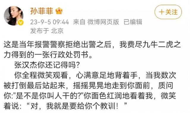 这是2011年的事,孙菲菲一再提起,很可能是被深深伤害。一个女孩在众人面前被几个男人打,换作谁都会有心理阴影,多年后想讨公道也情有可原。