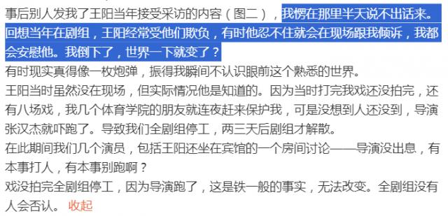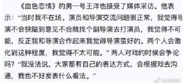 后来有人给她当年王阳接受采访的内容,王阳态度中立,称和导演合作良好,还说演员和导演矛盾激化到这种程度不太可能。