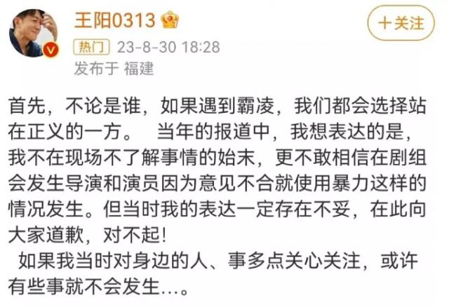 该剧男主角王阳当时回应,称会站在正义一方,还表示事发时不在现场,不了解始末。