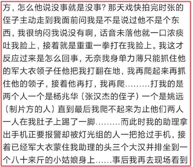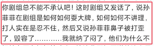这才有了孙菲菲文中后半段的意思:当年你在剧组受欺负我安慰你,我被打后你却态度中立。