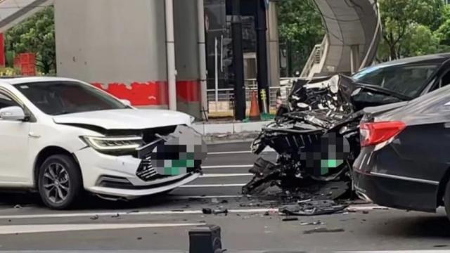据现场目击者称,事发时路口多辆机动车猛烈碰撞,强大的撞击力使得部分车辆的安全气囊弹出,车辆碎片散落得到处都是。还有目击市民表示,涉事驾驶员疑似身体不适,躺在了地上。