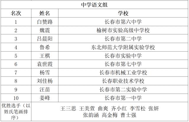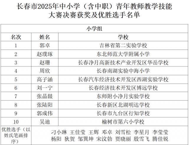 长春市教育局揭晓中小学青年教师教学竞赛获奖名单