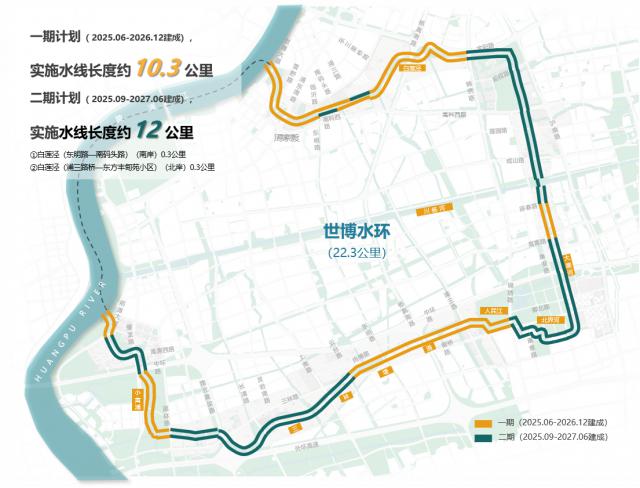 据悉,世博水环品质提升工程一期计划2026年12月完成,实施水线长度约10.3公里,二期工程计划于今年9月开工,2027年6月完成,实施水线长度约12公里。