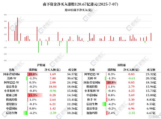 10、南下资金净买入港股超过120亿港元,主要加仓美团、建行和腾讯。
