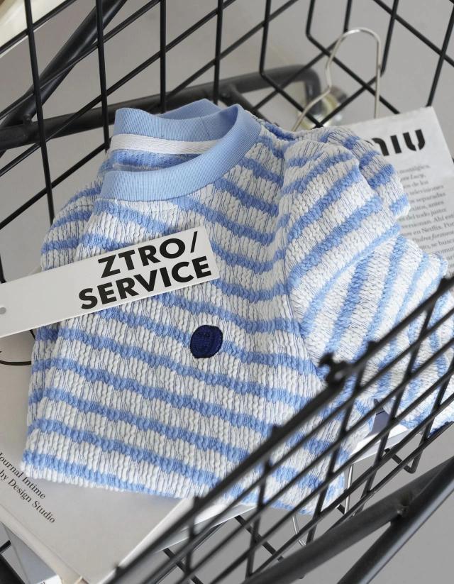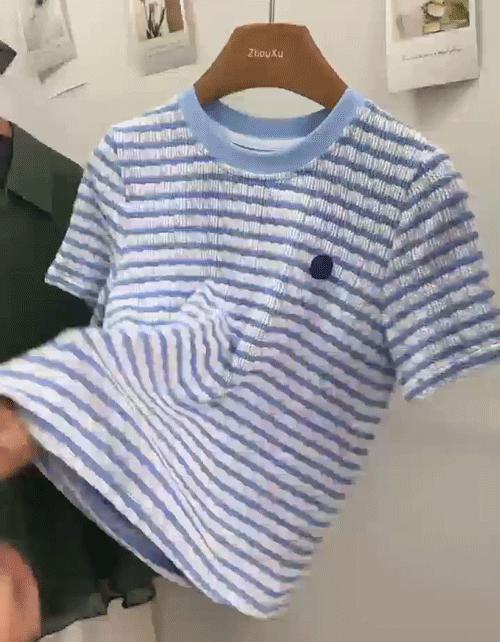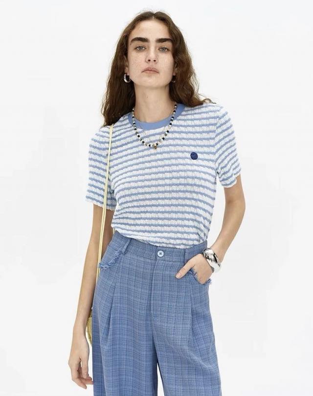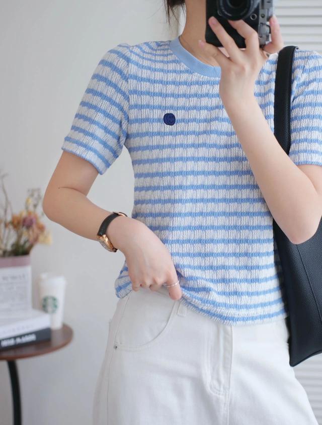 这就是掌柜专门为夏日寻来的——COICI · 冰激凌蓝白调针织短袖针织上衣。