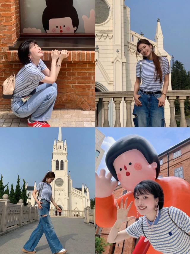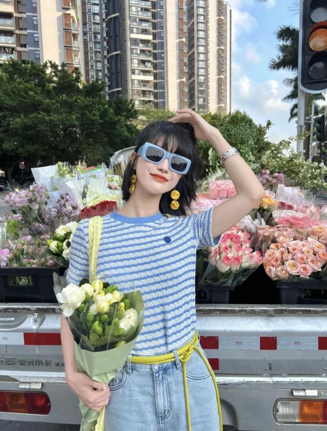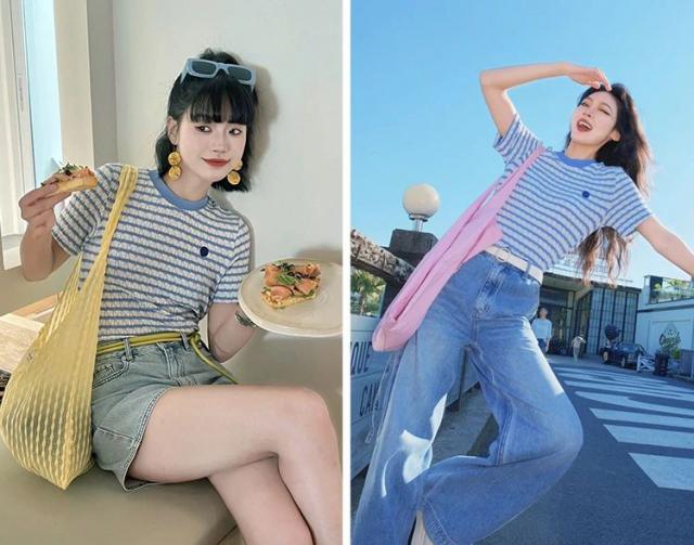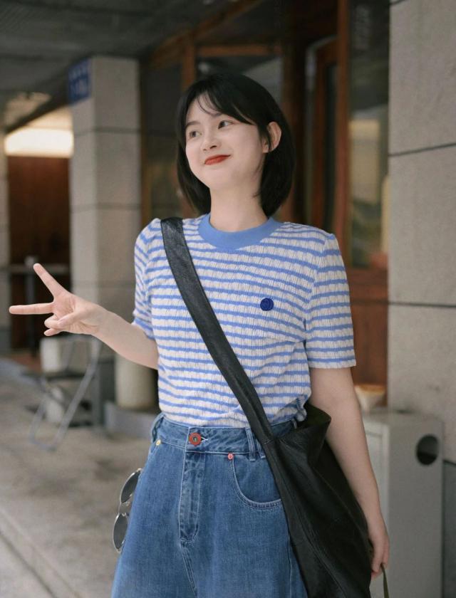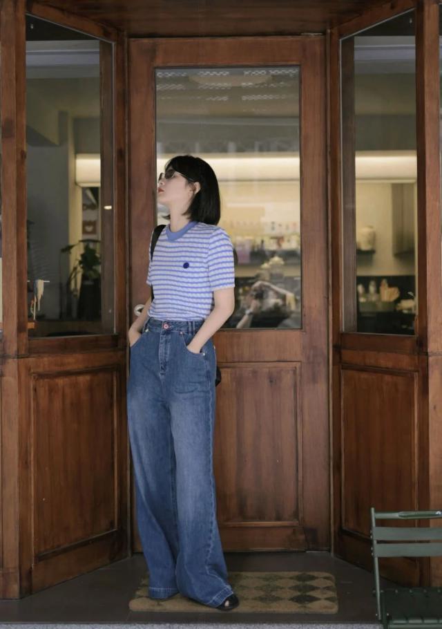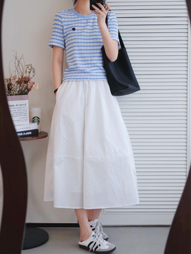 下半身随便搭配一条白裤子或者小白裙,就是绝妙的 Clean Fit 穿搭,满满的温柔海风和蓝色夏天的感觉。