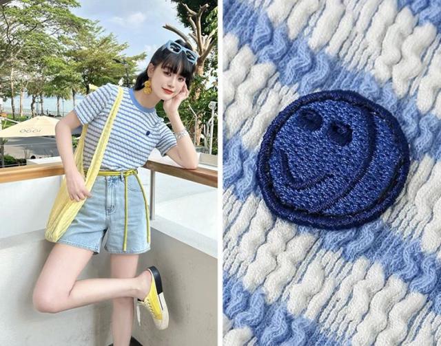 胸前有一个笑脸小刺绣设计,这可是整件衣服的点睛之笔,就像穿上这件衣服后的心情写照,情绪价值直接拉满。