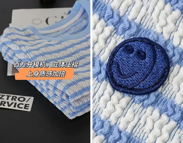这是一款自带独特肌理面料的针织上衣,采用了百万开模机立体褶皱工艺,非常精致。