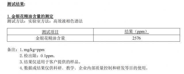 BIONCEE - 10A植萃森息袜金银花精油检测报告: