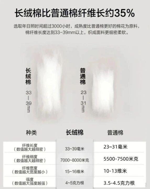 PS:长绒棉工艺成本比纯棉高不少,它不易变形、更耐洗,穿着比纯棉还舒适。