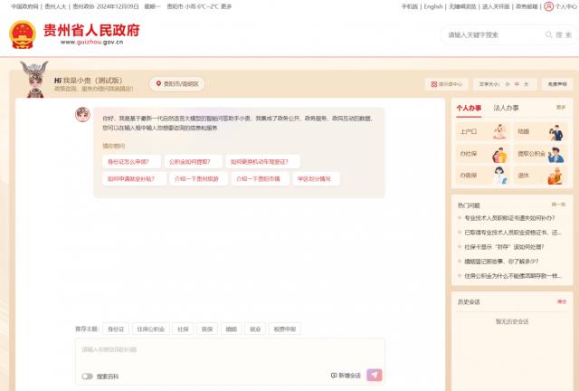 “小贵”已正式在贵州省人民政府官网上线,提供猜你想问、推荐主题、办事主题等智能问答服务。它能一键触达全省各级政府网站及应用的信息和服务,支持PC端和移动端,大大提升了搜索的精准度和效率。