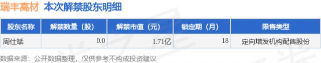 瑞丰高材7月8日0股限售股解禁,占总股本0%