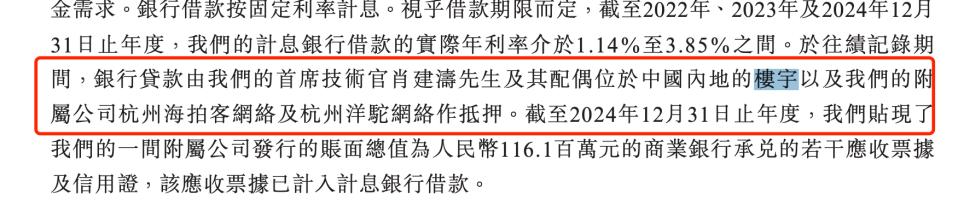 凤凰网财经《IPO观察哨》发现,为了维持公司运营和应对赎回,海拍客已转向抵押融资。2024年其计息银行借款从2023年的220万飙升至1.37亿,抵押物甚至包括了首席技术官肖建涛及其配偶的个人楼宇,以及两家附属公司的资产,财务风险不断叠加。
