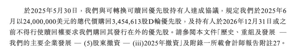 截至2024年12月31日,海拍客已花费1100万美元(约合人民币7800万)回购了部分D轮优先股。就在递交招股书前一个月,即2025年5月30日,公司又签订协议,承诺在2025年6月支付2400万美元(约合人民币1.7亿)回购更多D轮优先股,同时持有人需在2026年底前不行使赎回权。