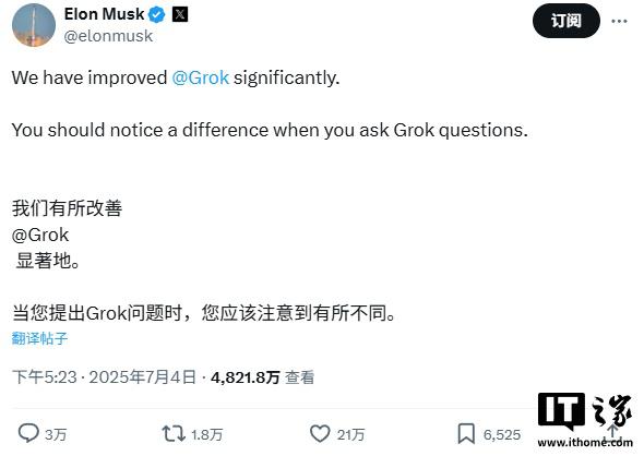 马斯克宣布Grok 4将于7月10日直播发布