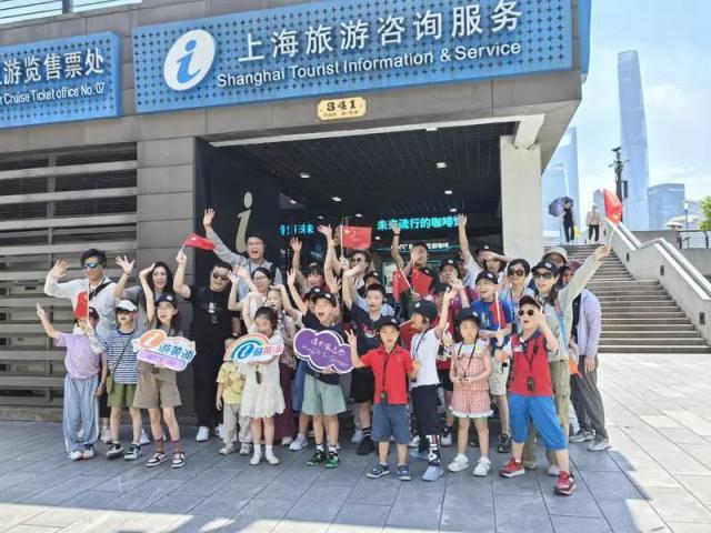 来到南京路步行街的永安百货绮云阁前,历史细节在孩子们眼前展开。导游介绍:“这面旗帜是用床单缝成,颜料是红药水,旗杆由竹竿和电线绑成。1949年5月25日,它在这里首次升起!”孩子们好奇地看着,一位少年追问升旗勇士的下落。