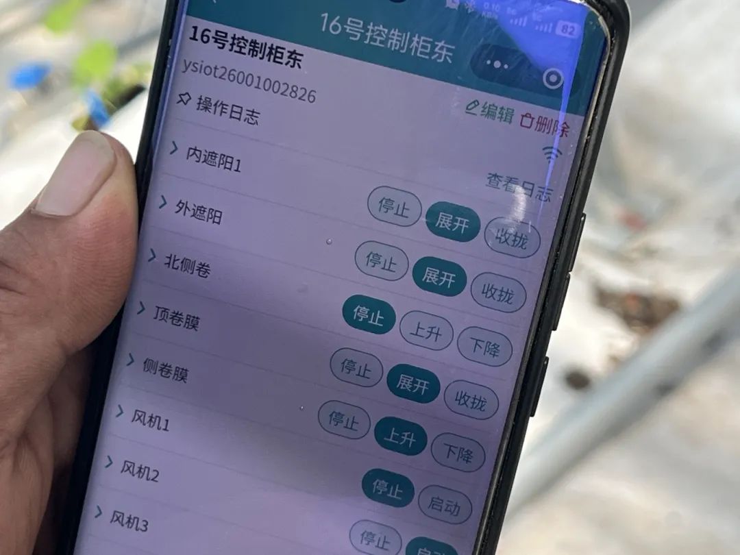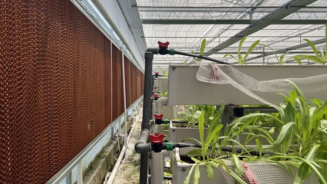 当遮阳系统无法完全控制持续上升的温度时,王玉伦接着在手机上启动了“降温组合拳”。一侧的湿帘系统开始进行水循环降温,另一侧的风机也同步启动,形成空气对流。这套智能温控系统能够让棚内温度稳定在36℃以下,相比未采取措施时降低了约10℃。