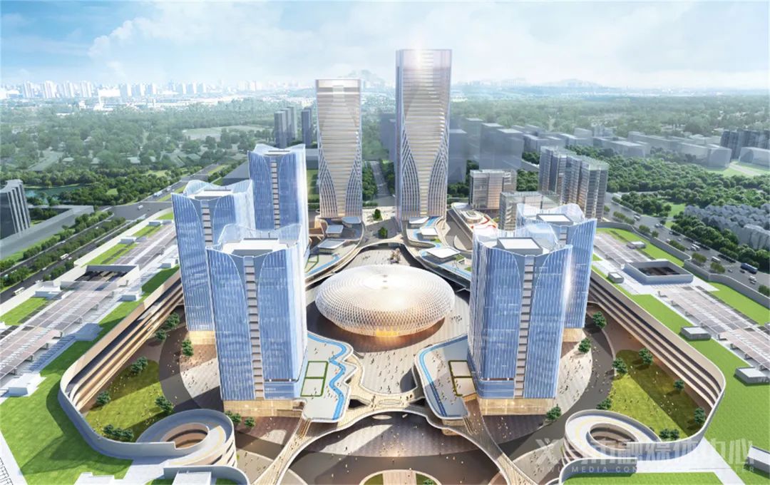 全球数贸中心项目位于义乌国际商贸城五区市场以东,占地560余亩,建筑面积超125万平方米,总投资超83亿元,致力于打造新一代市场综合体,成为全球贸易标杆地。项目围绕“新贸易、新市场、新地标”三条主线,统筹生产、生活、生态三大空间,涵盖市场、商务写字楼、商业街区、公寓和数字大脑五大功能板块。其中,市场板块作为主引擎,建筑面积41万平方米,设有5000余个商位。