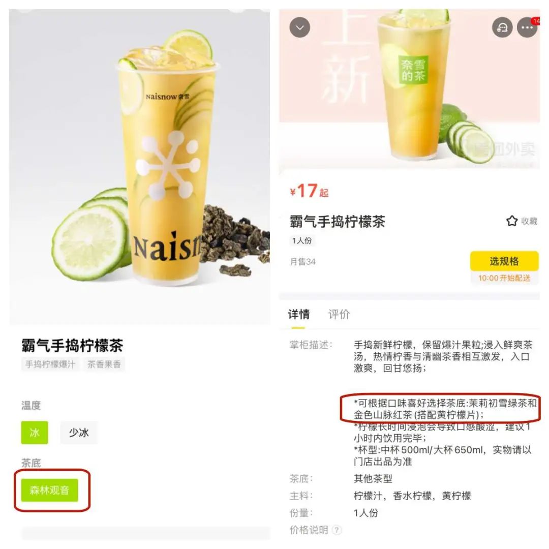 奈雪的霸气手捣柠檬茶,原本会根据茶底搭配黄柠檬或香水柠檬,近期该产品只能选香水柠檬版本。奈雪天津门店店员表示,目前仅“瘦瘦小绿瓶”中有一片黄柠檬,其他产品不再用黄柠檬。